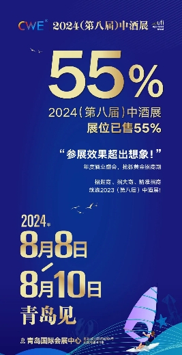 另据了解,2024年3月5日—3月7日,2023(第四届)华南中酒展将在广州·保利世贸博览馆举行;2024年8月8日—8月10日,2024(第八届)中酒展将在青岛国际会展中心举办。日前,两场展会整体展位分别已售79%、55%。