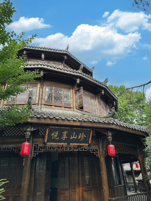 穿过高大气派的古城楼,林荫遮蔽,古韵充斥在氤氲的空气中。踏过汉白玉拱桥,抚过每一块绿瓦青砖,从唐代的缠枝花鸟图火锅到明代的铜台掐丝珐琅龙纹火锅走过,眺望每一处传统民居建筑,徽派建筑、川西民居、东南亚度假木屋、四合院、湖景别墅……在溪水潺潺声中,体会龙腾“景、味、地、文、娱”全新餐饮旅游战略布局中返璞归真般的幽静。