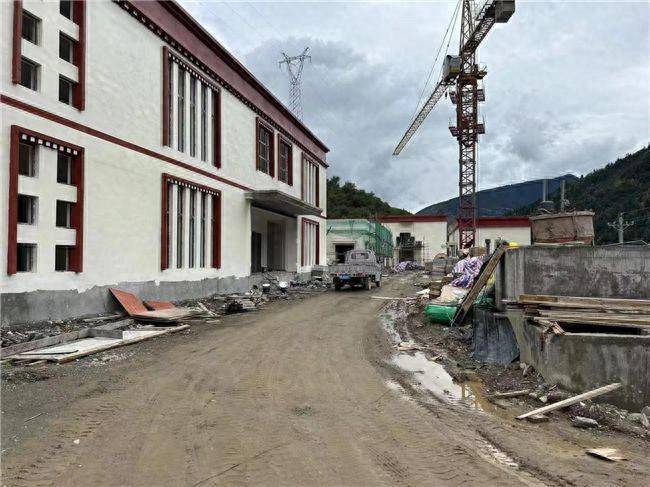 同样在白玉县城区第二完全寄宿制小学,记者看到室内外管道均由铝皮包封,楼栋末端智能监控电缆连接铺设完成,钢结构平台吊装完成......