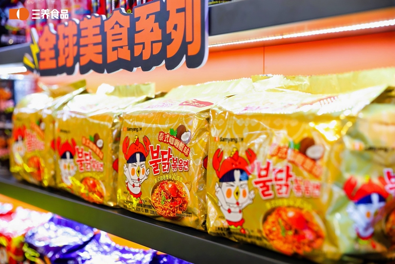 此外,由中韩联合研发的首款火鸡面——泰式咖喱蟹味火鸡面也在本届展会上展出,这款由中国消费者高票选出的定制产品自上市以来便备受青睐,5天内狂卖13000包,目前首批试售全部售罄,一包难求。它巧妙地将东南亚最具代表的椰香奶味与经典火鸡辣味完美融合,鲜、搭、香、辛四绝口感,精准再现泰式风味,每一缕面条都浸透了浓郁的咖喱精髓,令人恍若置身于泰国夜市的热烈氛围中,不禁感叹“这一口泰地道辣!”。这一成果不仅展现了三养食品对中国市场的深刻理解,同时体现了其在产品创新和市场拓展上的不懈追求,是三养深耕中国的阶段性成果。