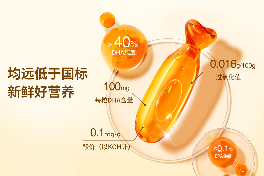 正因为帝斯曼既然是全球DHA市场的龙头,这也导致市场上很多品牌的藻油DHA均来自帝斯曼。而合普诺与市面上众多DHA品牌不一样的是:很多品牌都是外采帝斯曼的原料,找自有工厂或其他工厂加工生产成品,在这个生产环节帝斯曼是不会监管的。合普诺本着“只做高品质的初心”,首创与帝斯曼成品油交付合作,保证100%采用新鲜的藻油原料,滴滴琥珀色。经检测,其酸价(≤0.1mg/g)与过氧化值(≤0.016g/100g)均远低于国标,确保了藻油的新鲜度。