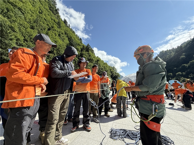 “这些项目设置完全模拟真实登山环境。”速攀裁判长介绍,“我们要选拔的是真正经得起考验的‘雪山卫士’。”来自全国登山俱乐部的领队代表、川藏队高山向导、岩羊探险高山向导和三奥雪山本地向导同台竞技,分组展开应急救援、奥太娜速攀、登山技能大赛等比拼,既考验向导的专业能力,更展现团队协作精神。