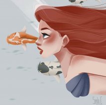 这一幕发生千与千寻中,无精打采的千寻怀里抱着一朵玫瑰花,正坐在汽车后座上发呆。当画师将她和迪士尼画风相结婚之后,千寻就变成了美女和野兽中的贝儿公主。穿着蓝白色的连衣裙,一脸无神。