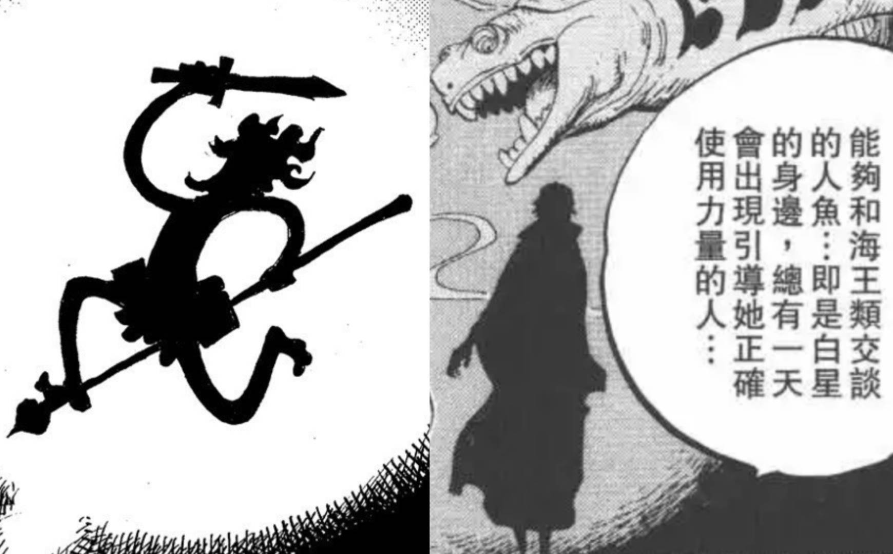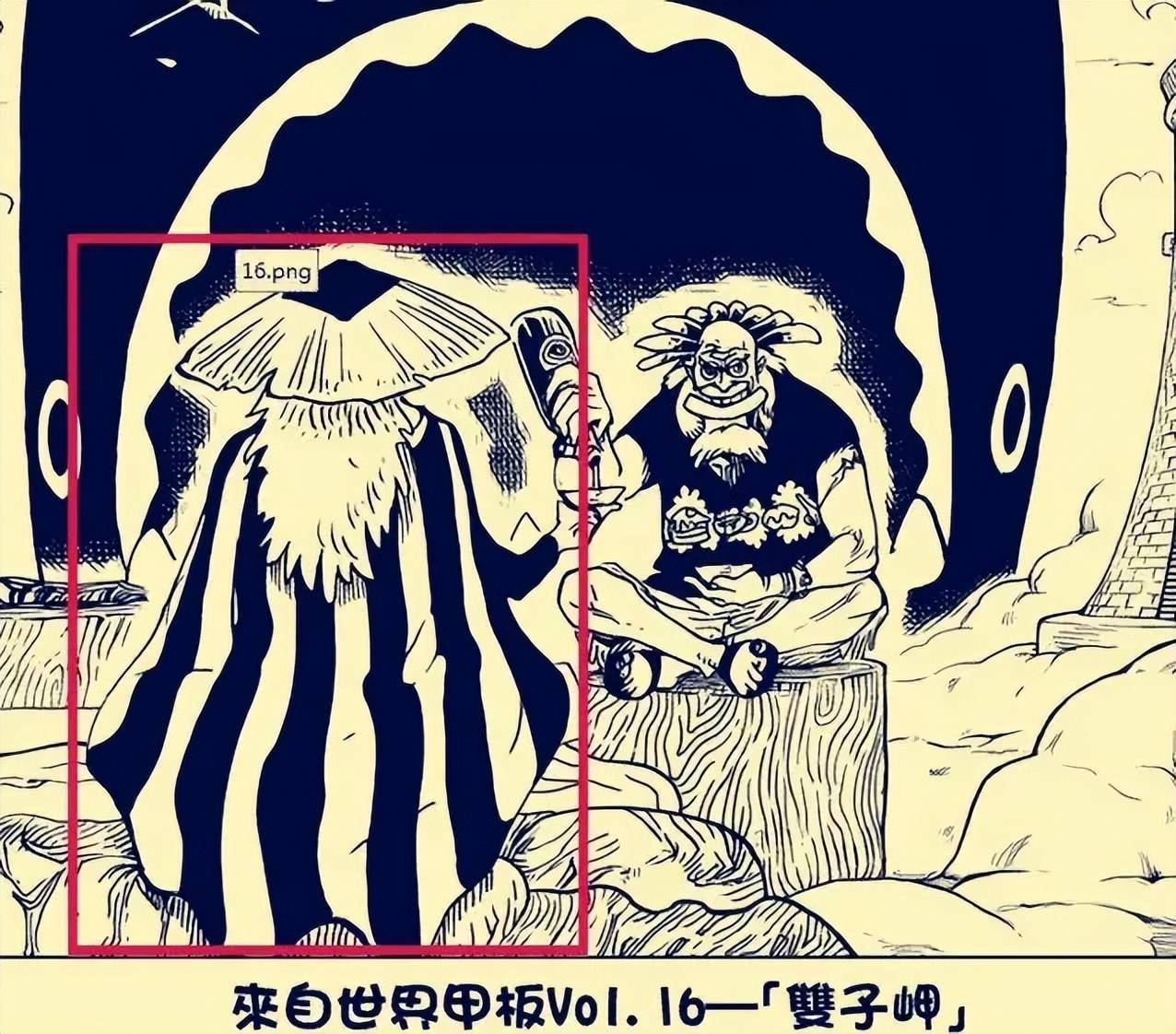 在路飞击败明哥后的新闻传遍整个伟大航道,因此尾田专门出了扉页故事,所以在【双子岬】出现了一位神秘的斗篷男子,留着长发与库洛卡斯喝酒谈话,能看出他们是老交情了。