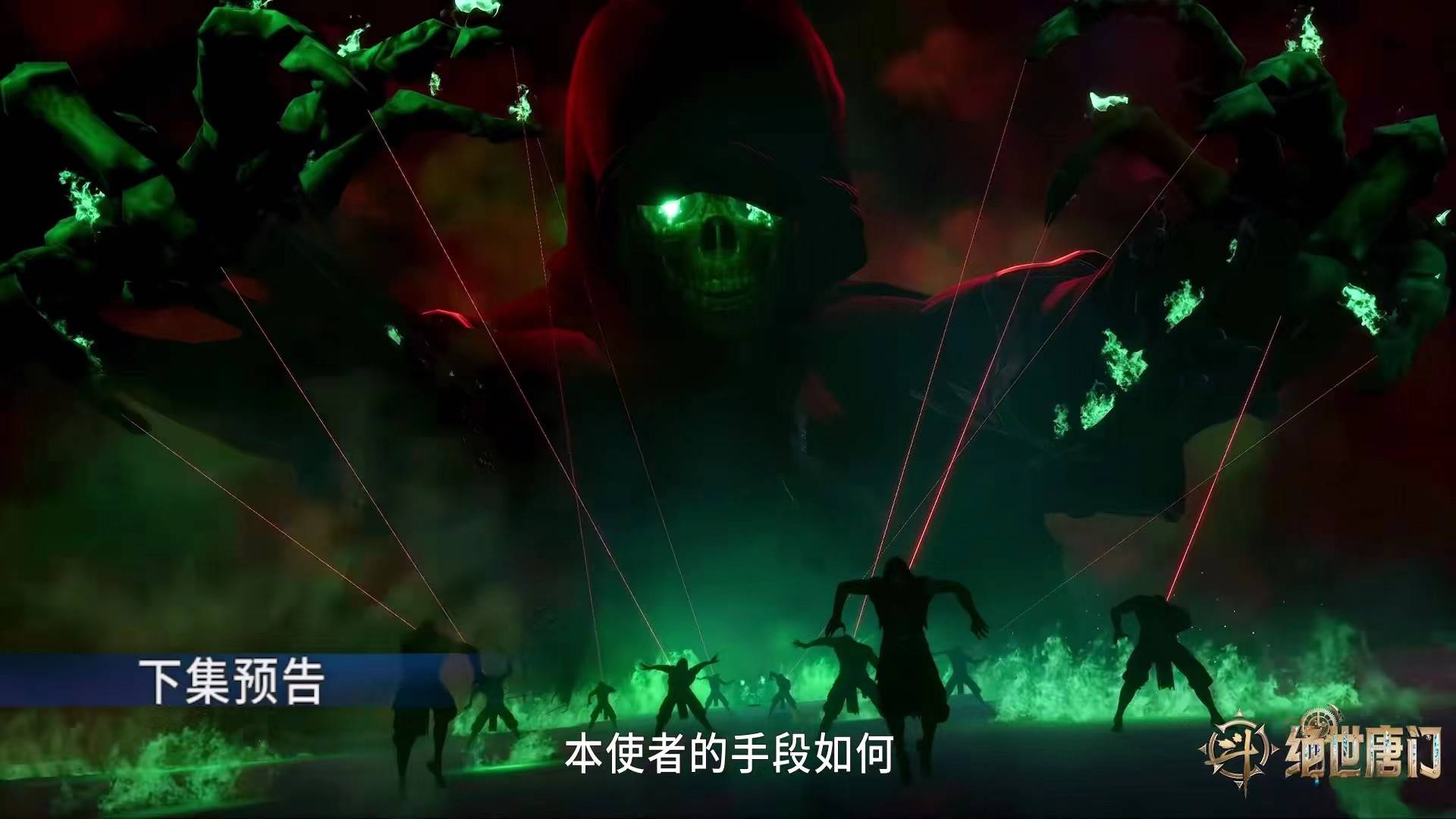 从预告来看,马小桃这一代史莱克七怪和霍雨浩这一代史莱克七怪刚进入死神使者所在的地盘,就引起了死神使者的注意。死神使者也就正式现身了,可以看到死神使者阴森森的,一身鬼气,还戴着一顶头盔,压迫感十足。