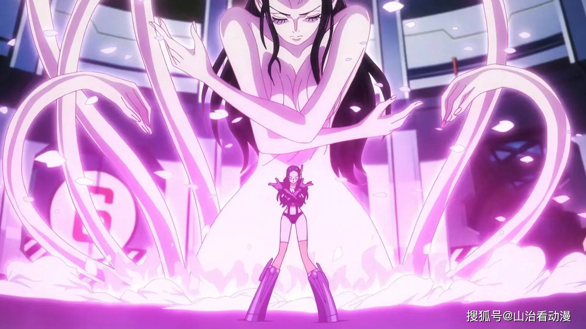 罗宾也非常愤怒,直接开启了巨大化,一个巨型的罗宾出现,这造型还是很不错的,巨型罗宾太美了,身体十分完美。罗宾使用了无数的手掌攻击炽天使,不过竟然被炽天使的能力挡住了。草帽一伙才发现炽天使竟然会使用鱼人空手道,释迦出现阻拦炽天使甚平,让他回去了。