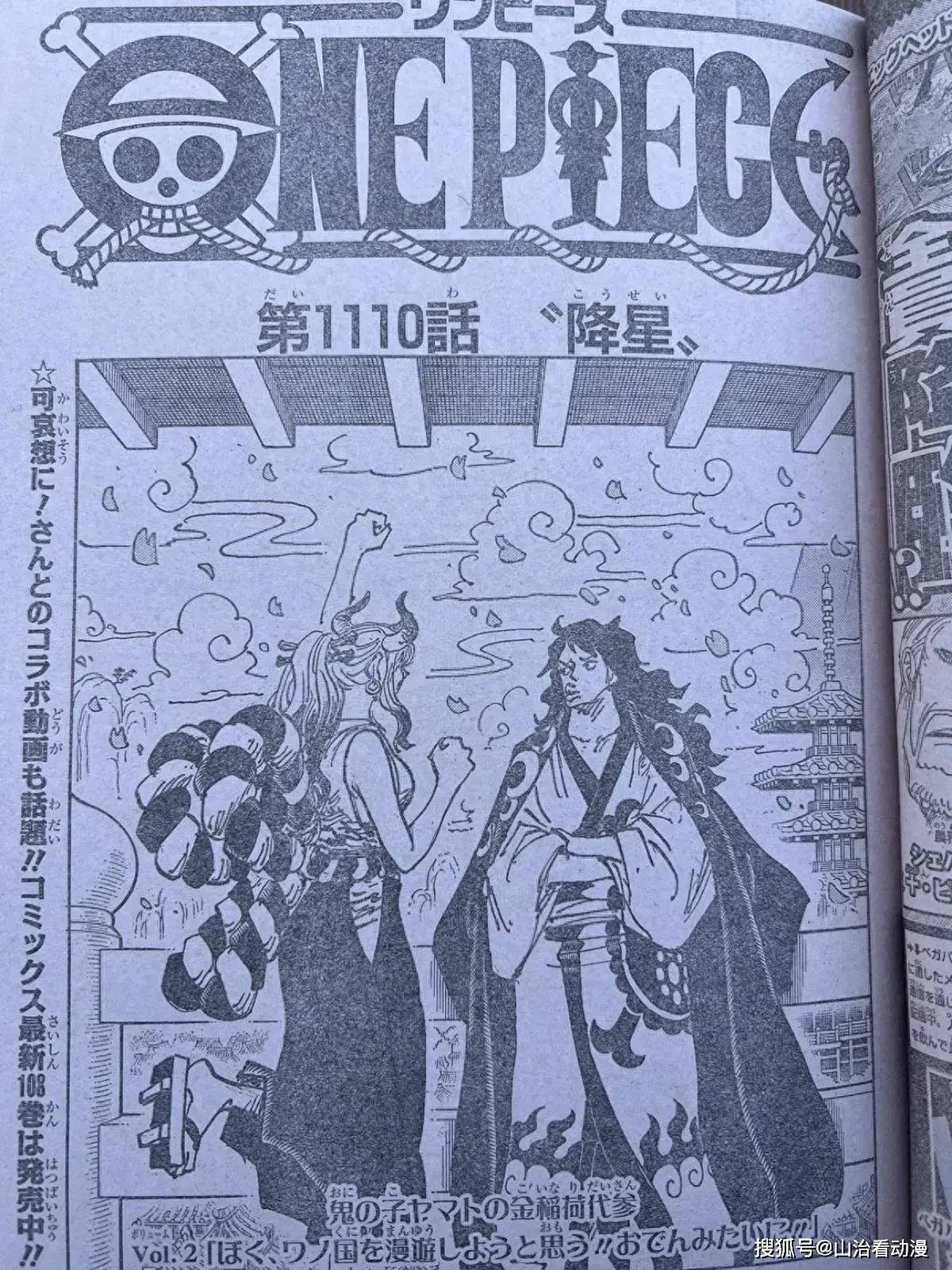 漫画最新一话的标题是降星,这个标题应该是指五老星降临到未来岛,扉页小故事是大和与桃之助两人,大和要开始周游和之国,模仿当初的御田,然后出海冒险,桃之助有点不舍得,毕竟这是自己未过门的老婆呀,要是放跑了大和,桃之助必定会后悔死了。