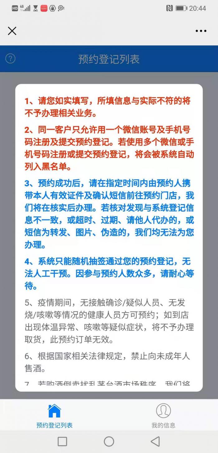 2月2日,21世纪经济报道记者前往位于重庆市渝北区龙山街道的贵州茅台自营店体验。在自营店门口,有硕大的微信扫码预约告示。厂家要求,地址栏要填身份证登记地址,预约成功后30天内不得重复预约,同一人不得换用其他微信号预约,否则系统自动将其列入黑名单管理,半年内不得受理预约申请。同时,预期或请他人代办的一律不予办理。