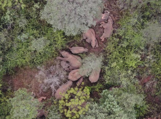 截至6月11日17时,北迁象群总体向西南方向迁移8.12公里,持续在玉溪市易门县十街乡活动。独象离群6天,位于昆明市八街街道密林内,与象群直线距离约16公里。人象平安。