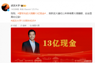 教育慈善新巅峰!雷军给武大捐13亿:不主张攀比