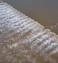 今年的钱塘江大潮中,在浙江海宁出现了交叉潮、一线潮、回头潮、鱼鳞潮等不同形状,潮水到达浙江海宁老盐仓后,从起潮点出发,钱塘潮可以逆流而上130多公里,跑完全程相当于完成了3个马拉松。