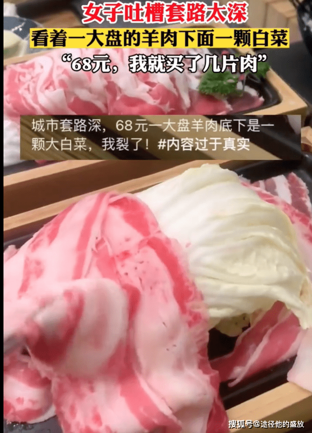女子随后发视频感慨:“城市套路深,68元一大盘羊肉底下是一颗大白菜,我裂了。”不少网友纷纷点赞,表示也有过相同经历。