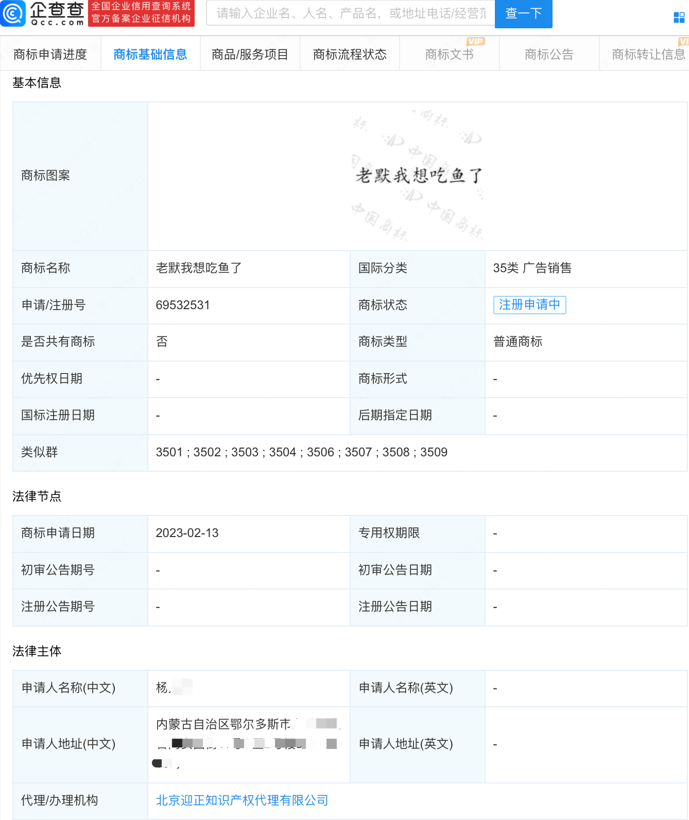 狂飙果然是大爆剧,!“老默我想吃鱼了”被抢注商标