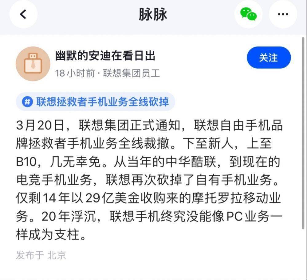 原标题:又一手机玩家离场?联想拯救者手机业务被曝全线砍掉 仅保留MOTO移动业务