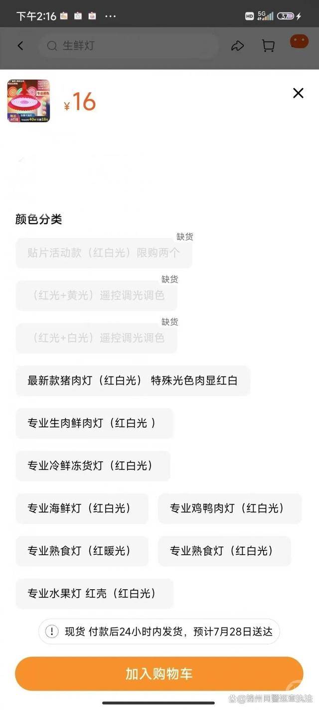 ▲部分“生鲜灯”已售罄。图片来源/网络截图