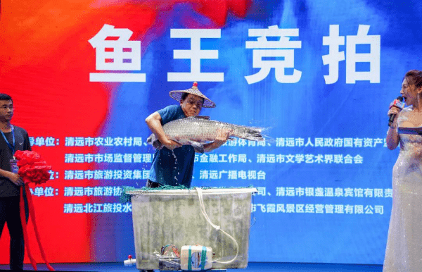 2023清远市首届开渔季暨北江美食文化月活动,在南岸公园广场正式启动。活动上,一条北江打捞起来的40斤黑皖鱼以30万元的价格成功拍出,成为今年开渔季当之无愧的“鱼王”。
