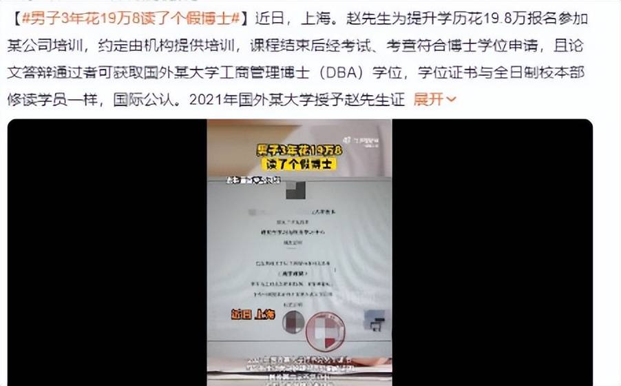 近日,上海的一位男子读博经历走红于网络。事情是这样的,这名男子为了提升个人学历,报名参加了某留学服务机构的国外某大学工商管理硕士学位班。
