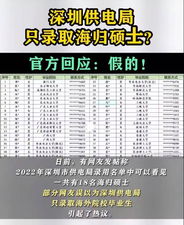 原标题:深圳供电局辟谣只录取海归硕士:个别网友摘取部分信息断章取义