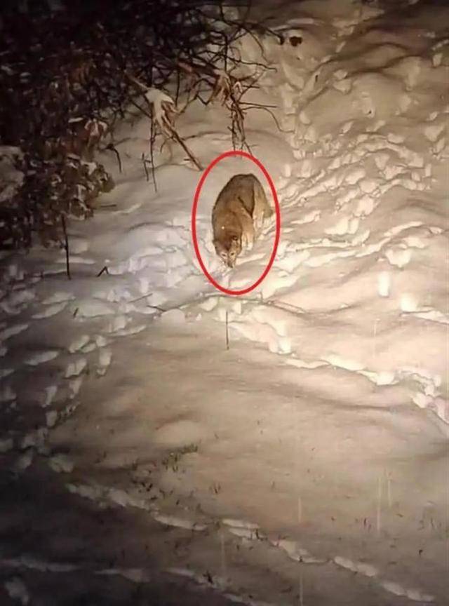 视频显示,一只黄色皮毛的动物在雪地里活动,画外音传来:“这可不是狗。”“狼,就是狼。”