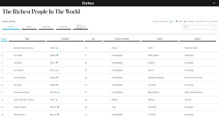 财联社消息,据福布斯富豪榜,法国奢侈品巨头路威酩轩集团董事长兼CEO伯纳德·阿尔诺再次超过特斯拉CEO埃隆·马斯克,成为全球首富。