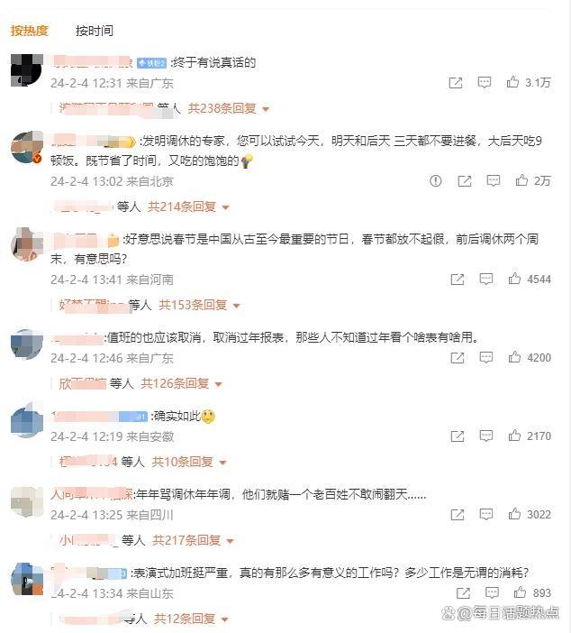 此外,专家还呼吁企业应该重视员工的休息时间,尽可能地为员工提供足够的休息和休假时间。企业应该认识到,员工的身心健康是公司最重要的财富之一。只有当员工得到充分的休息和放松时,才能更好地应对工作和生活的挑战,提高工作效率和创造力。有不少网友对此也发表了自己的看法。