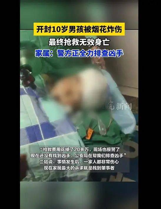 “孩子送到医院,做了三次手术,医生下了两次病危通知书,最后没有抢救过来,亲人凑的抢救费都花掉了20多万元。”乐乐二姑说,现场也报警了,但截至目前,还没有找到凶手。“那个烟花应该是叫狼嚎火箭类的,肯定要朝天上放的,不知道为什么朝人群放,县公安局也在全力帮我们排查凶手,现在一家人都非常伤心,最大的诉求就是尽快找到凶手。”
