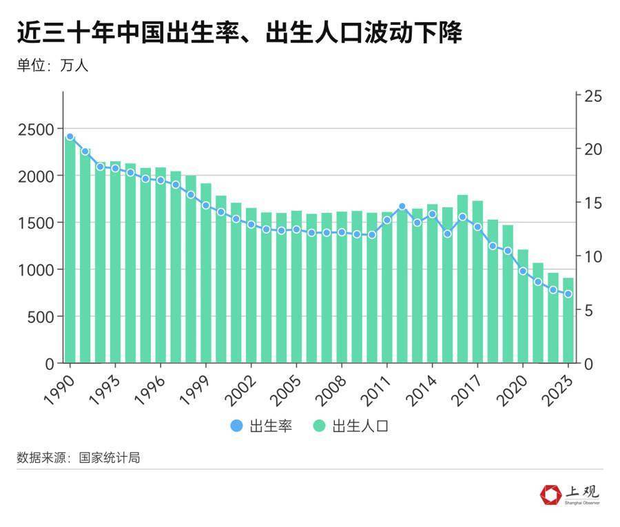 每年的出生人数也不断下降,从1994年的2121万人,降至1998年的1991万人。