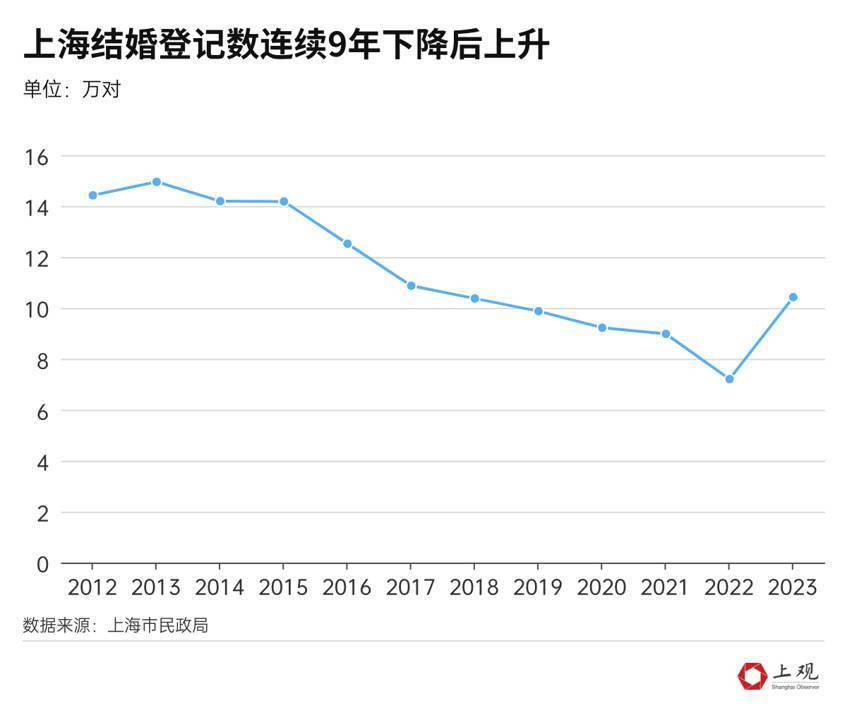 不仅是上海,多地2023年结婚登记数据都出现了多年来的“首次回升”,引发热议。