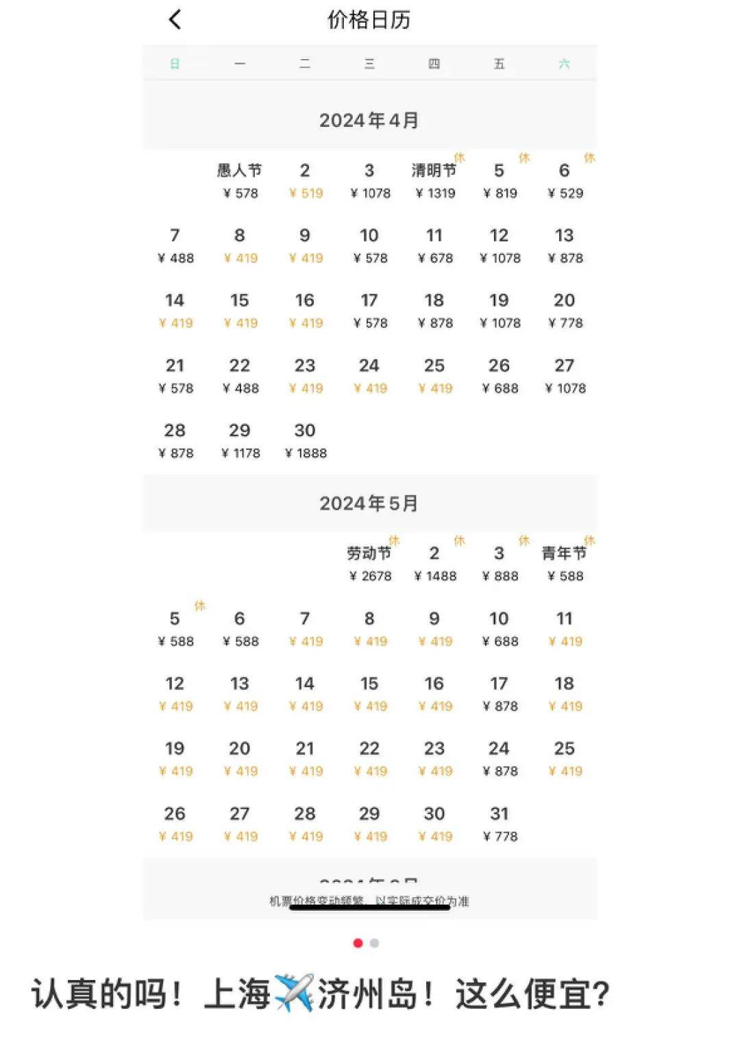 上海到大阪的8元机票是极少个例,单程不说还有天价行李费来收割你;但淡季时的江浙沪到济州岛的往返机票比京沪高铁还便宜,因此,有人把这几条航线称之为【空中绿皮】。