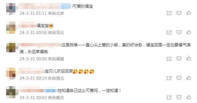 有网友写道,祝愿“福宝”一切顺利,“能很快适应新环境”。还有网友表示,“福宝回国后一定也要福气满满,永远幸福哦!”