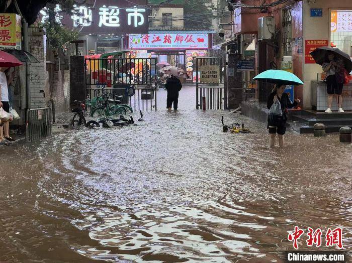 原标题:广东暴雨街道成小河 部分地方积水可以没过成年人膝盖