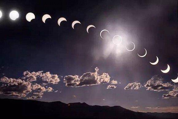 在凌晨的黑暗中,月亮缓缓移动到太阳与地球之间,逐渐“吞食”了太阳。这场天文大戏从大洋洲东部开始,经过太平洋东部,再横跨墨西哥、美国和加拿大,最后在大西洋西北部落下帷幕。整个过程历时数小时,但对于处在日食带的人们来说,那是几分钟的震撼与惊叹。