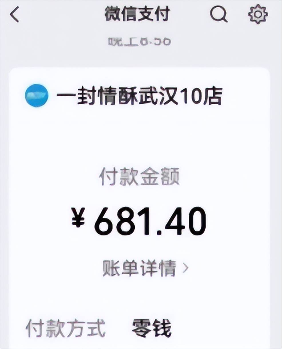 从该网友提供的付款信息来看,涉事门店为一封情酥武汉7店,收款方为黄海蓝。