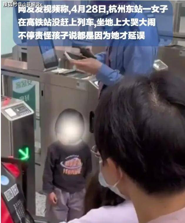 女子赶不上高铁,在检票口情绪崩溃对着幼小的孩子大喊大叫:都是因为你,才赶不上高铁。都是你害的。