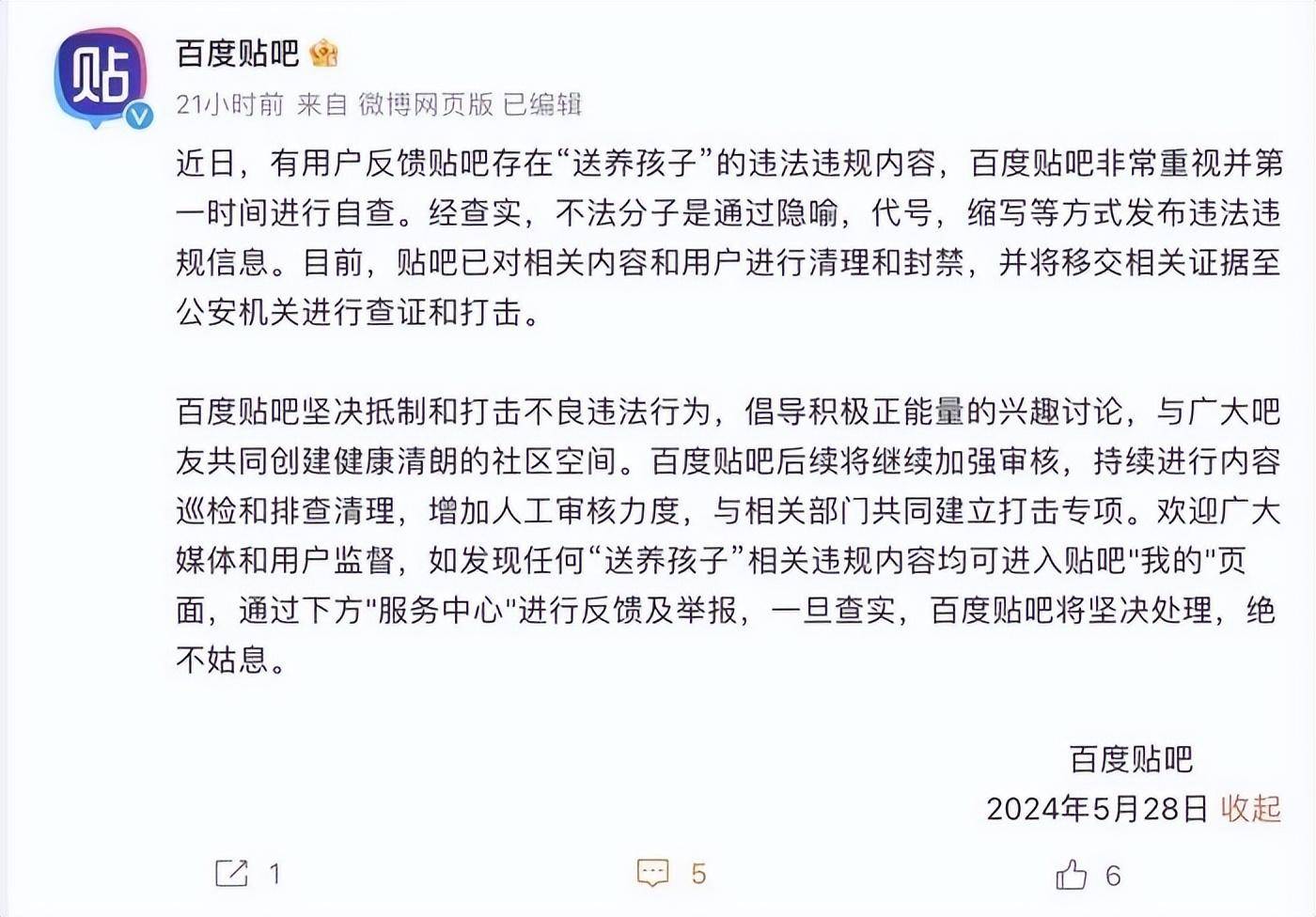 近日,百度贴吧上竟有人标价5万8千元“送养”自己的孩子。