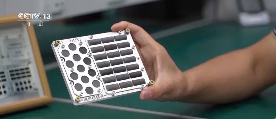 国家数字建造技术创新中心、华中科技大学教授周诚:这就是马上要跟随天舟八号货运飞船在空间站当中去做暴露实验的样品。这些都是模拟月壤烧结的样品,一共分为三块样品板,实际上我们设计的整个暴露时间是三年,所以每隔一年我们会下行一块样品板,带着在空间站暴露之后的样品返回地球,然后再来做相关的实验。