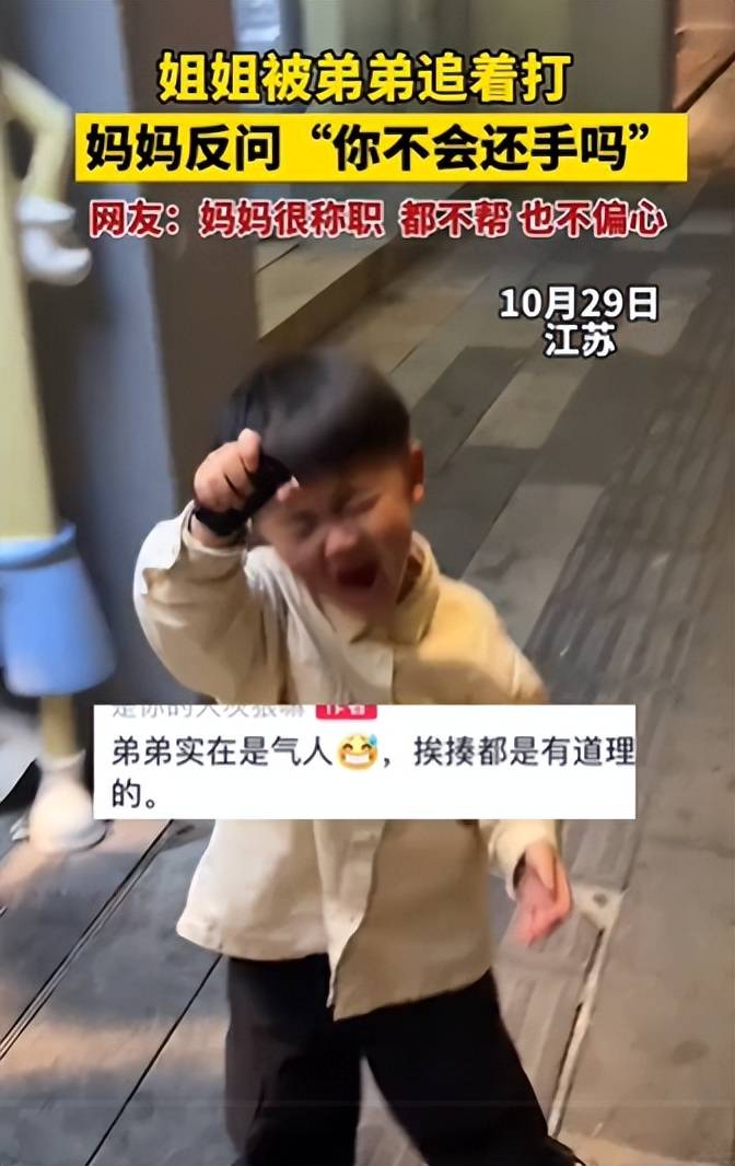 你说这网友是怎么想的呢? 难道他们不知道, 姐姐是“女孩子” , 她打不过弟弟吗? 难道他们不知道, 姐姐是妈妈的“亲闺女” , 需要妈妈保护吗?