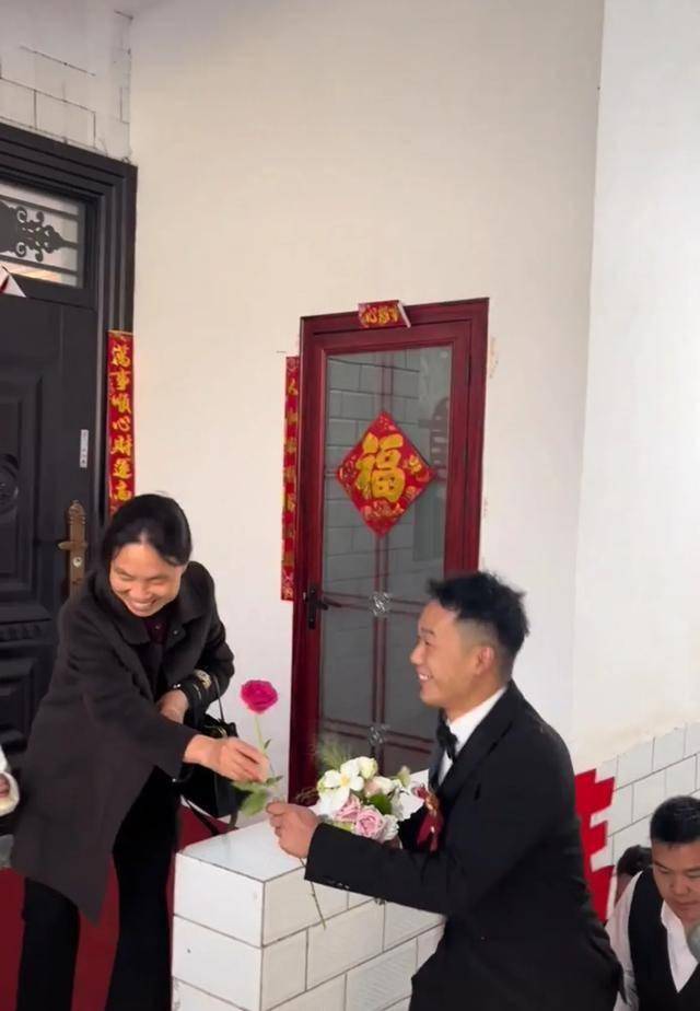 原标题:新郎接亲 女方没堵门还安排鲜花路