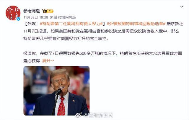 外媒:特朗普第二任期将拥有更大权力!网友:战斗吧,中国网!