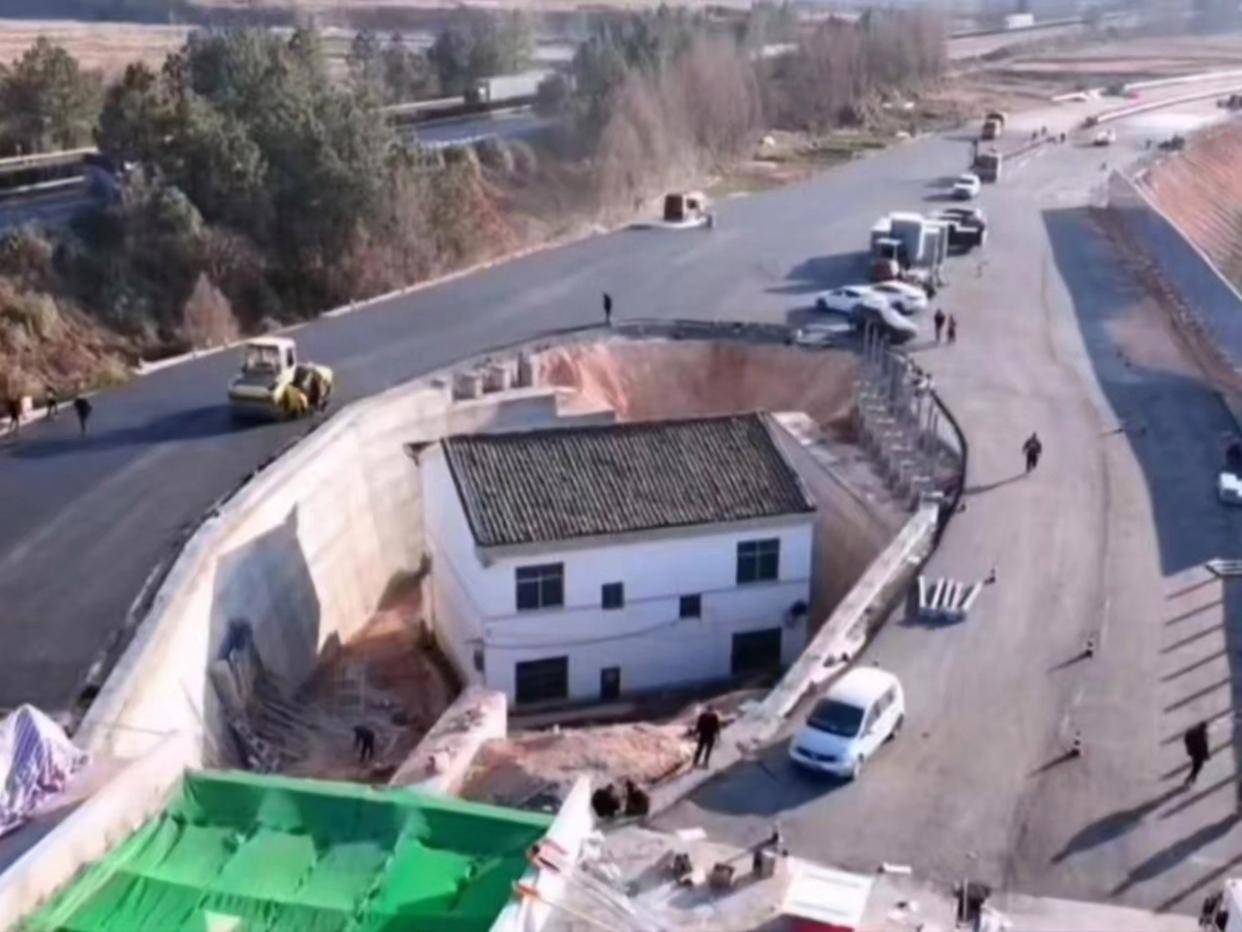 从空中俯瞰,一栋二层民房被新修的 G206 绕城公路紧紧包围,宛如一只眼睛镶嵌在马路中央,这就是被网友戏称的 “金溪之眼”,其房主也被称为江西 “最强钉子户”。