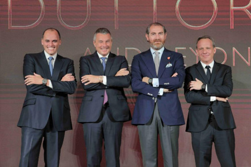 从左至右:宝格丽腕表董事总经理平兴韬(Antoine Pin)、首席执行官Jean-Christophe Babin、腕表设计高级总监Fabrizio Buonamassa、大中华区总裁柯力亚(Kolia Neveux)