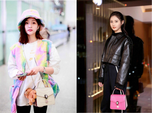 和宣璐不同的是,身着彩虹毛绒马甲搭配同色系渔夫帽的吴宣仪在机场亮相的时候,搭配的是宝格丽白玛瑙色小牛皮风琴包,这一点睛之笔让整体look更加清爽。而同为小花的陈钰琪一改往日风格,扮起酷女孩,皮衣造型又帅又飒,同时不忘背一款宝格丽闪光紫水晶色小牛皮风琴包展现内心的甜蜜柔软。