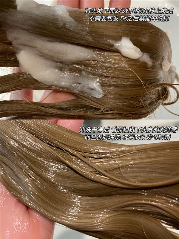 身为一个懒人,我是深谙懒人之道的,当然对于护发也是尽量在最短时间内搞定,温莎森林安瓶发膜的护发方法非常方便:在家洗完头之后就可以涂抹发膜,先将精油倒入发膜中,用搅拌棒搅匀,再抹到头发上,停留差不多5秒钟就可以冲洗,相比别的发膜既要蒸又要费劲在那里等上十分二十分钟的,温莎森林安瓶发膜可真是太得我心了,晚上洗完吹干倒床就睡,第二天蓬松的头发,淡黄的长裙(啊不是)我又活力满满啦~