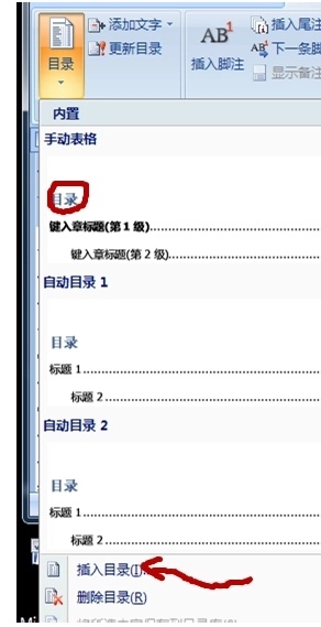 2.系统会展示多种预设目录格式供选择。您可以根据需求直接选用,或者点击“插入目录”进行个性化设置。