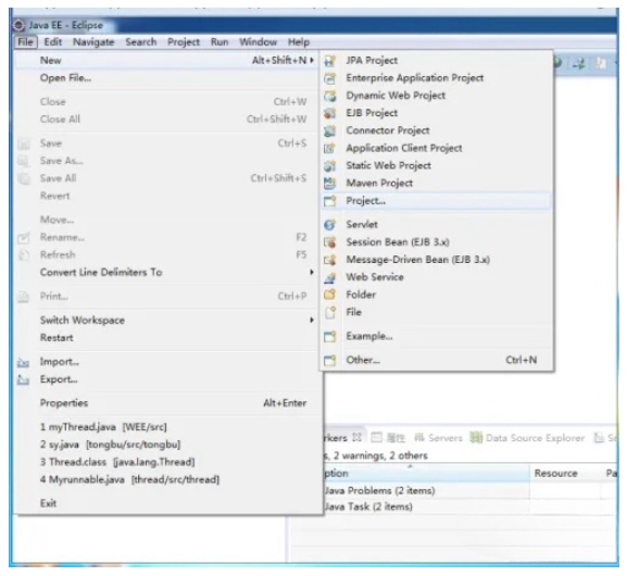 1、打开eclipse,点击菜单栏的 File,选择 New→Project;