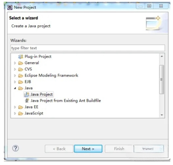 2、在弹出窗口New Project中选择 Java -> Java Project;