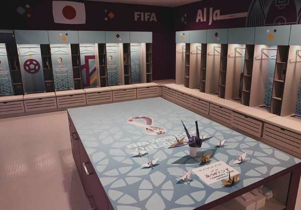 据报道,尽管遭遇失利,但日本队赛后依旧按照惯例对更衣室进行打扫,清扫干净后的更衣室焕然一新,此外日本队还折了若干千纸鹤放置在桌面上,并留下了一张日语+阿拉伯语的“谢谢”字样的纸条。据悉,日本队在本次世界杯每场比赛赛后都会对更衣室进行卫生清扫。