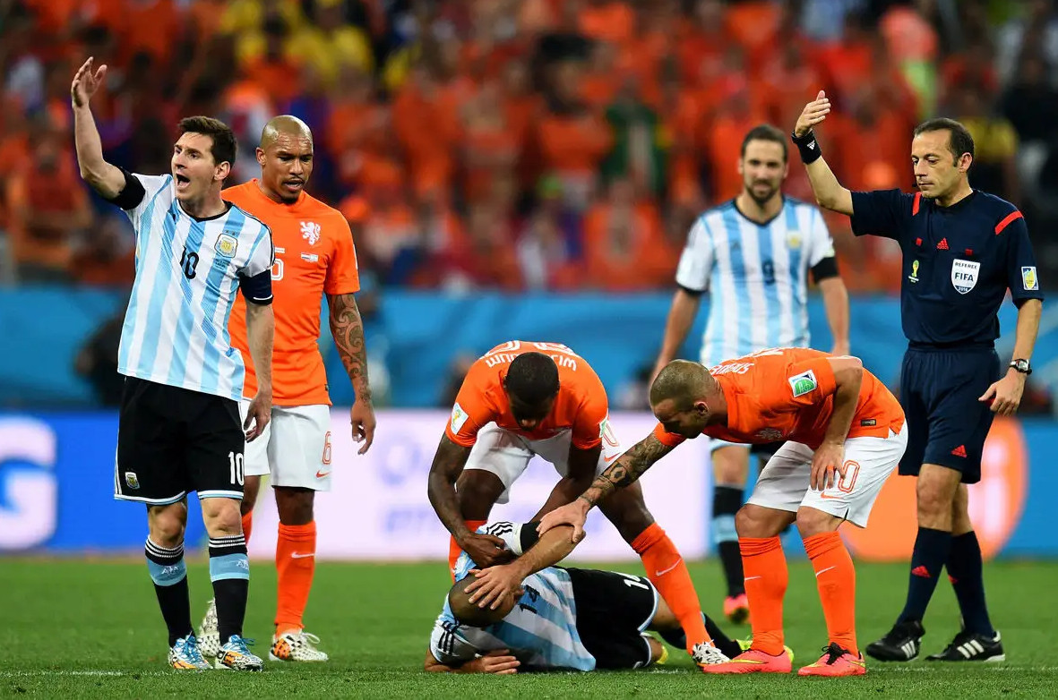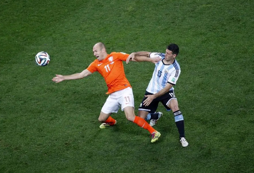 荷兰在首先进行的比赛中3比1战胜了美国,而阿根廷随后2比1淘汰澳大利亚,两队将在1/4决赛进行生死大战。