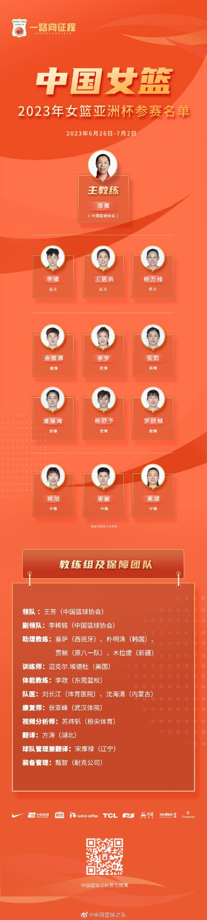 6月25日,据“中国篮球之队”官方微博消息:2023年女篮亚洲杯中国女篮参赛大名单出炉!