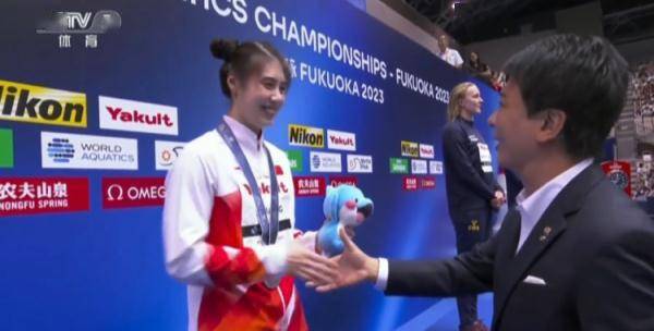 赛后,张雨霏换上“哪吒”造型的发型,登上了领奖台。